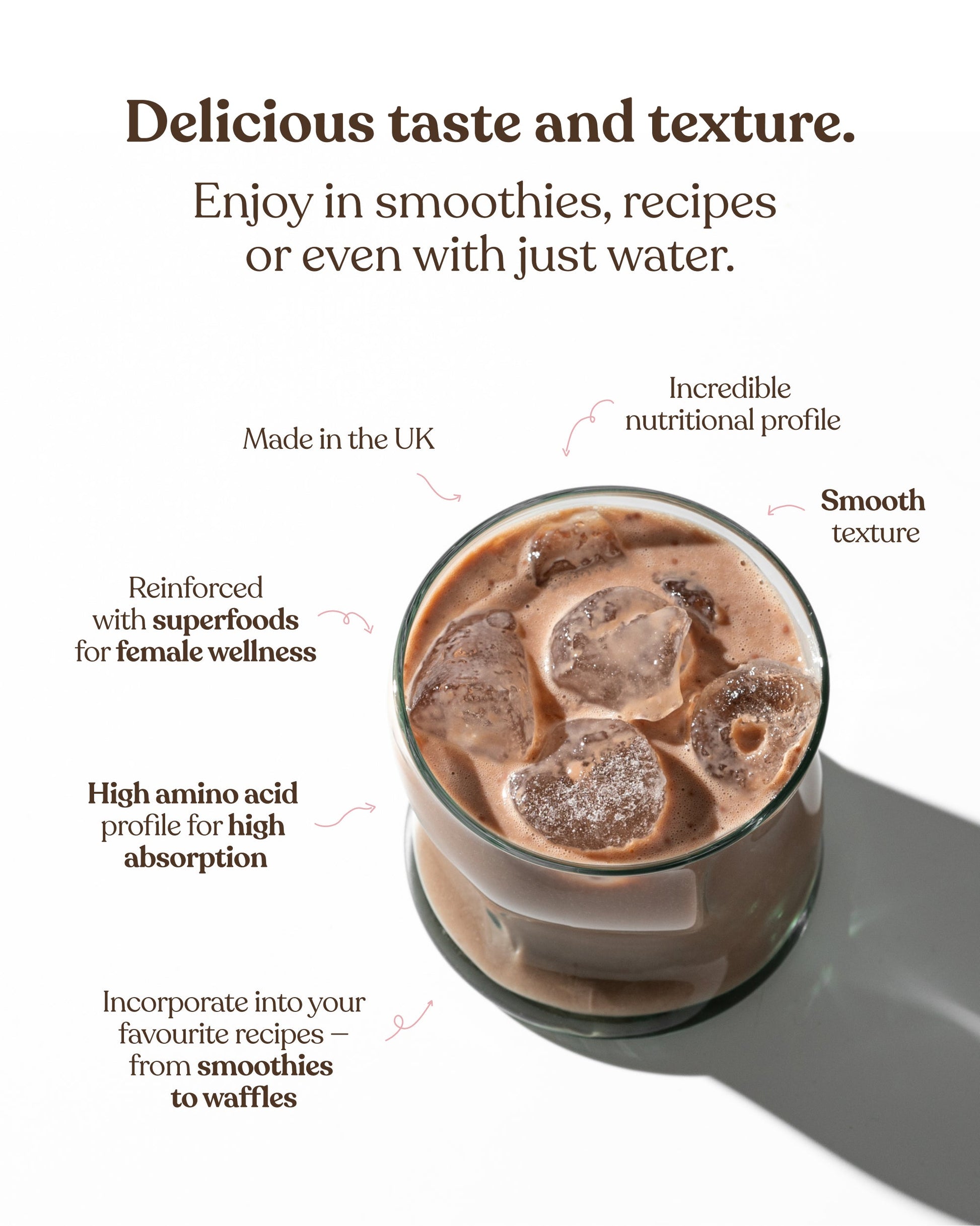 Each serving contains 20g of plant-based protein, helping you hit your goals, stay fuller for longer, and support muscle function and recovery — all without the bloat of dairy-based shakes.